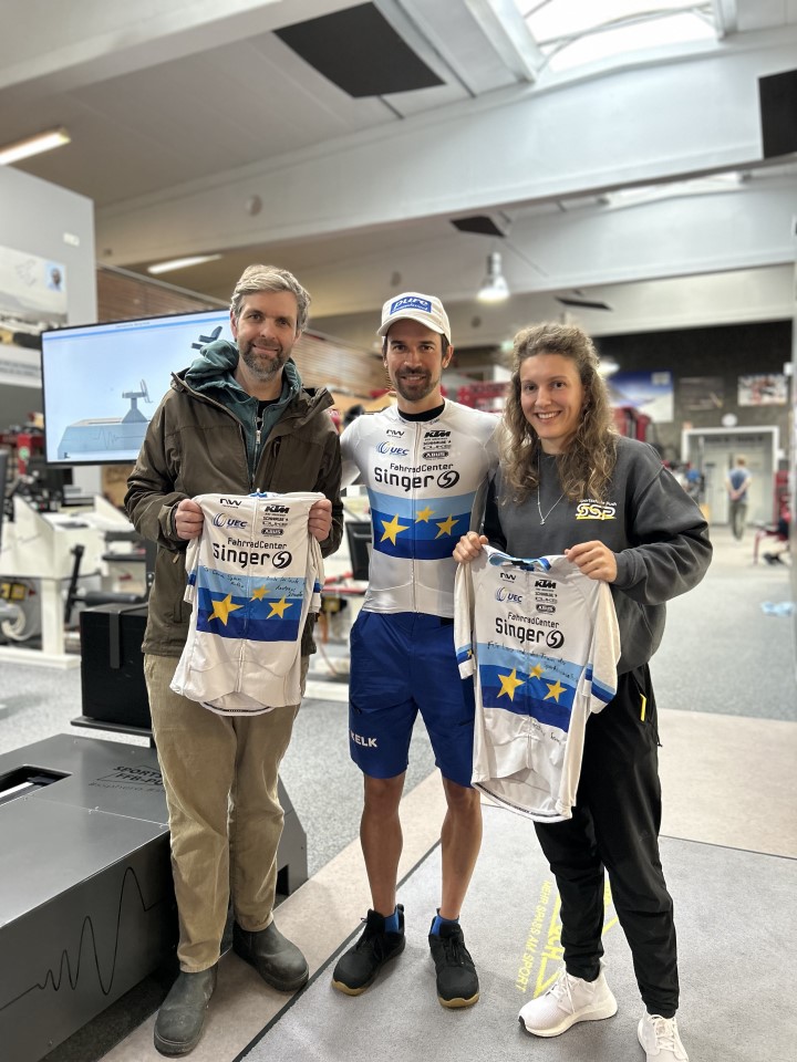 Andreas Seewald überreichte Lara als Dankschön sein Europameistertrikot. Er gewann die MTB-Marathon Europameisterschaft 2025.